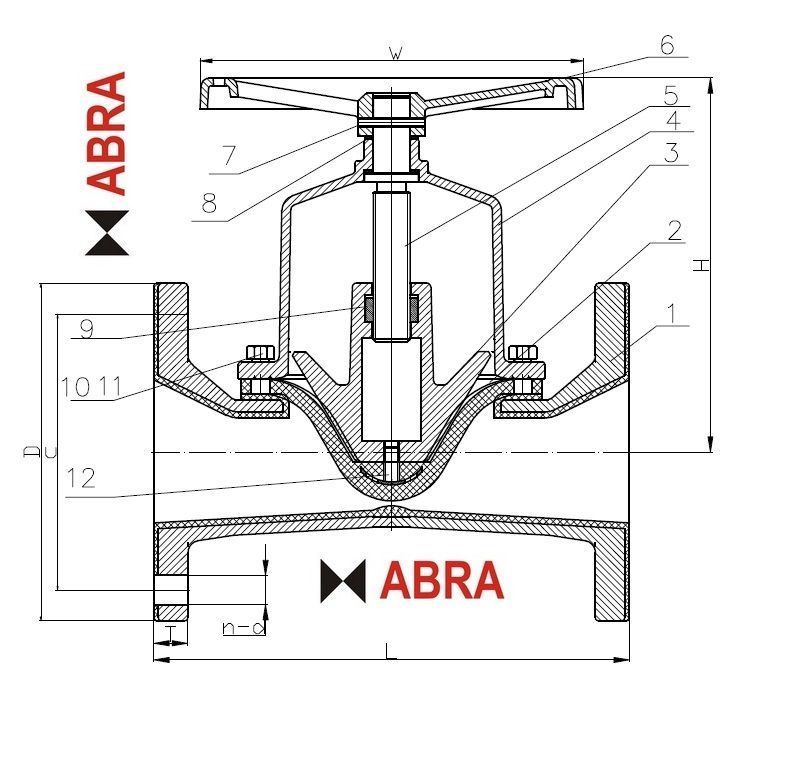Диафрагменный (мембранный) вентиль ABRA-M8(X)FB GGG50. DN50-200 в Краснокамске